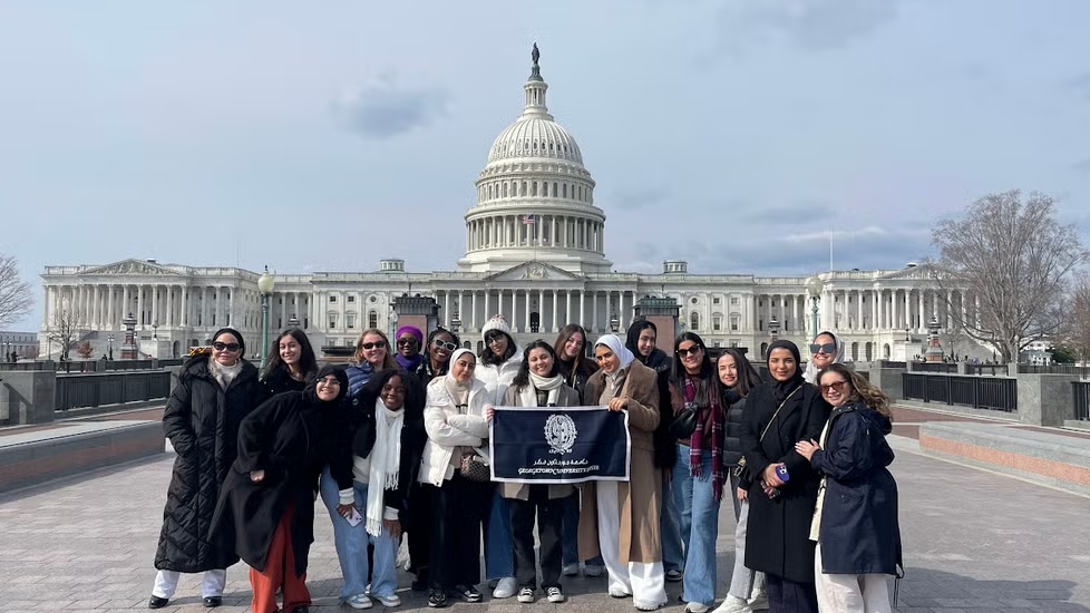 Both the DC and Doha campuses have access to a custom-built digital telepresence classroom that mirrors its counterpart. Here, students can take classes and have live discussions with their peers on their sister campus. Search “RPX Global Classroom” in the course catalogue to find these courses, which have included Quantitative Methods, South Asia in the Indian Ocean, and Race, Power, and Justice at GU.